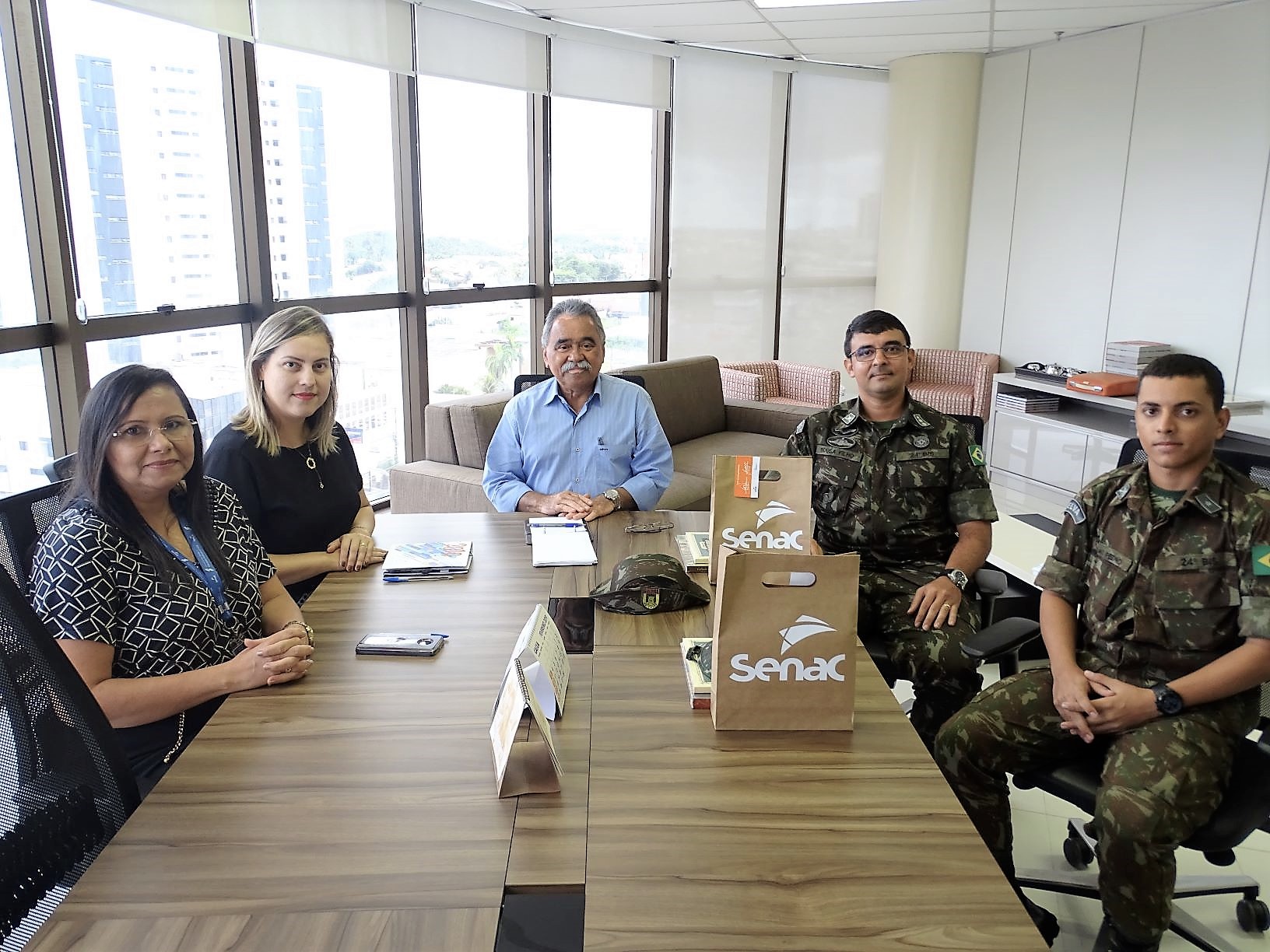 SÃO LUÍS – O Diretor Regional do Senac no Maranhão, Ahirton Lopes, recebeu na manhã de hoje, 18, o Tenente Coronel Sousa Filho, comandante do 24º BIS, e o Tenente João Pedro, coordenador do Projeto Soldado Cidadão. O objetivo do encontro foi retomar a parceria com o Senac referente às atividades de qualificação do Projeto Soldado Cidadão, e fortalecer cada vez mais as relações institucionais, que tem sido muito proveitosas para o batalhão e para a sociedade.