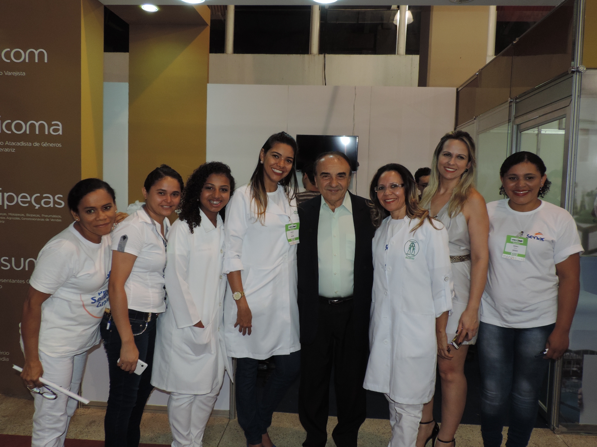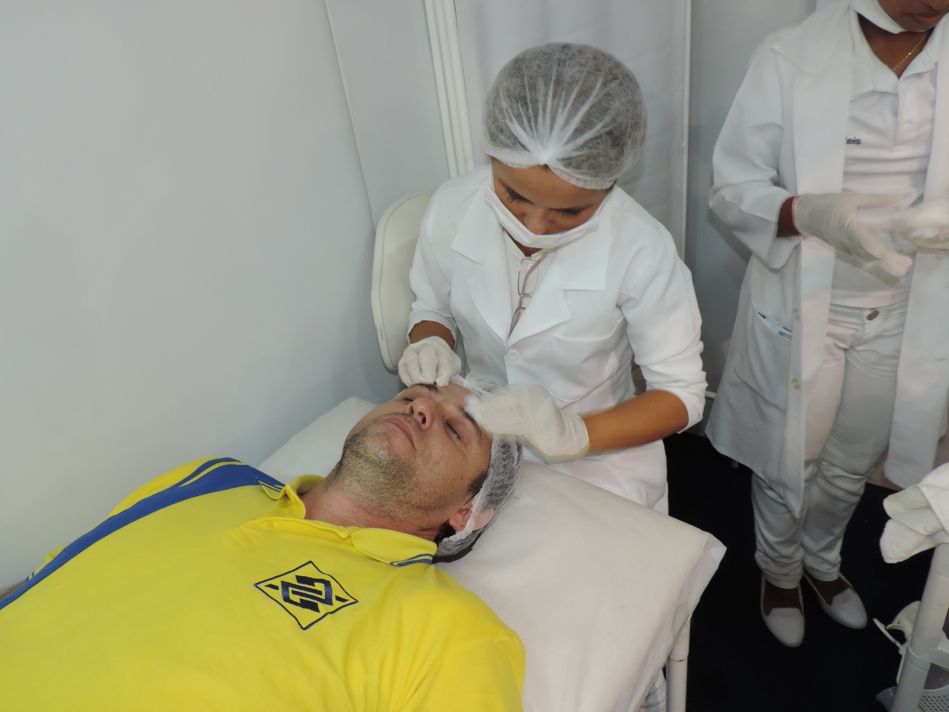 Coordenada pela instrutora Charlene Monteiro, as alunas do curso de Técnico em Estética também receberam uma visita ilustre no estande e realizaram serviços de limpeza de pele ao ex-jogador de vôlei da Seleção Brasileira, Antônio Carlos Aguiar Gouveia, mais conhecido como Carlão, um dos atletas referências no vôlei brasileiro. O capitão do primeiro ouro olímpico da seleção de vôlei do Brasil elogiou o trabalho das alunas. “Elas estão de parabéns!”, afirmou. Atualmente, Carlão é comentarista em um canal esportivo por assinatura e esteve no primeiro dia da Fecoimp através do Banco do Brasil.
